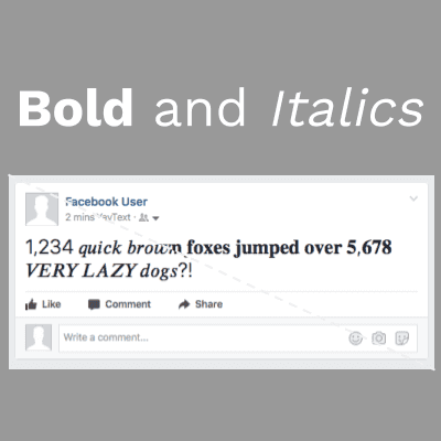 How-to guides: How to use bold on Facebook, How to use italics on Facebook, How to use bold on Twitter, How to use italics on Twitter.