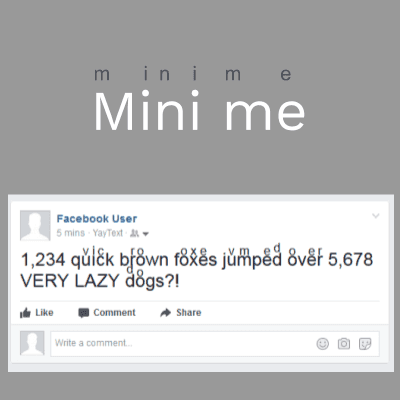 These styles produce unique looking text (eͤxͯaͣmͫpleͤ ) with small letters on top of big letters. The "mini-me" style puts the same small version of each letter on top of a big letter (like this: hͪiͥ). The "stacked" style puts different letters above each normal letter, in order to form small phrases (like this: gͪuͥys). These styles can be used to emphasize certain letters or words, to produce the visual equivelent of a stutter, or to make unique looking phrases and signatures. These styles can be copy-and-pasted into Facebook, Twitter, YouTube, Instagram, SMS, etc. Note: Not every letter is available in the small size. The small letters that look the best on top of the normal letters are "a", "c", "d", "e", "h", "i", "m", "o", "r", "t", "u", "v", and "x".