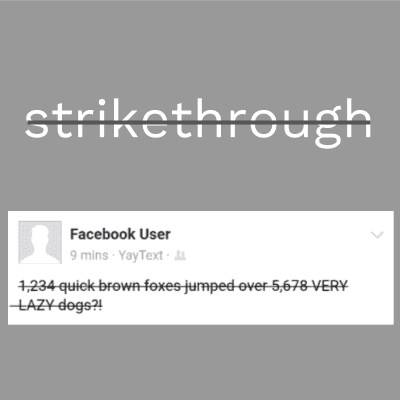 Strikethrough text has its origins in typewriters and handwritten editing, serving as a practical solution for denoting crossed-out or deleted content without rewriting. In modern times, the use of a strikethrough font remains significant, allowing writers to express irony, present alternative perspectives, or indicate discontinued information. The strikethrough effect adds contrast and depth to the message, emphasizing modified or substituted content. To incorporate strikethrough text in social media, our strikethrough text generator utilizes Unicode, enabling copy-and-pasting anywhere on the web. While the crossed out text generated by YayText may look similar to text generated using the HTML <strike> tag or the CSS attribute text-decoration: line-through, it isn't. You can incorporate strikethrough text into social media posts or captions, infusing written content with a distinctive and attention-grabbing aesthetic. By employing strikethrough text thoughtfully, you can convey unique ideas, highlight changes, or add a touch of creativity to your online presence.